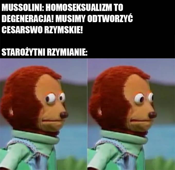 Szef faszystów rzeczywiście próbował odtworzyć Imperium Romanum, ale co do gejów, to pewnie miał na myśli zwykłych obywateli. To prawda, że homoseksualistów w Rzymie traktowano surowo, szczególnie w armii, ale nie dotyczyło to cesarzy, którzy mieli całe haremy kobiet i mężczyzn. Na przykład cesarz Heliogabal zasłynął z tego, że chciał wziąć ślub jako kobieta ze swoim niewolnikiem, który miał się stać cesarzem, a Heliogabal cesarzową. Mussoliniemu mogło się coś pomieszać, bo cierpiał na syfilis, który może wywoływać zaburzenia psychiczne.