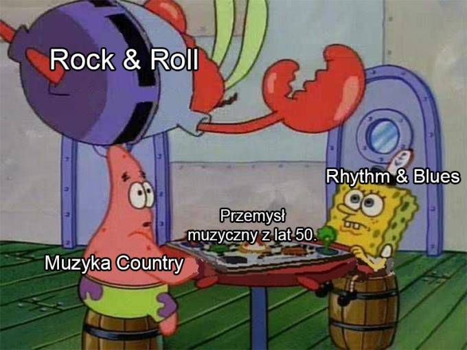 Można powiedzieć, że rock"n"roll powstał z uproszczonego schematu bluesowego granego w szybkim tempie w połączeniu z country oraz tradycyjnym jazzem.