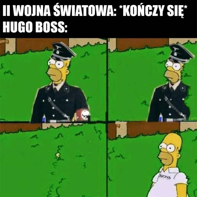 Firmę Hugo Boss założył niemiecki kapral Hugo Ferdinand Boss w 1924 roku. Szło mu niespecjalnie, w czasie kryzysu musiał zamknąć zakład, ale gdy tylko wstąpił w 1931 roku do NSDAP, zaczęło się prawdziwe życie (i szycie). Jego firma dostarczała mundury dla SS i Hitlejugend, więc produkcja szła pełną parą. Podczas II wojny światowej Boss korzystał z robotników przymusowych, zatem po wojnie stanął przed trybunałem denazyfikacyjnym. Otrzymał zakaz prowadzenia działalności gospodarczej oraz karę wysokości 100 000 marek, a wkrótce potem zmarł.