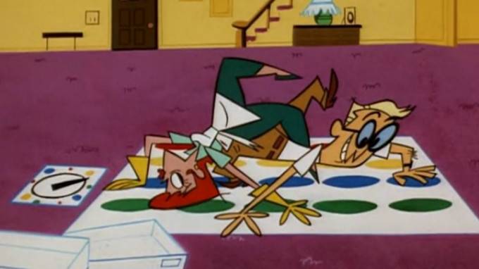 W zrealizowanym dla telewizji filmie „Laboratorium Dextera: Wyprawa w przyszłość” jest dość dziwna scena z udziałem mamy i taty. Rodzice przez kilka sekund są poza ekranem, z wyjątkiem nóg, które są splecione ze sobą jak gdyby bohaterowie robili to, co dorośli robią, gdy nikt nie patrzy. Jakby tego było mało, z ekranu dobiega stękanie. Mama Dextera mówi nawet: „Kochanie, nie sądzę, że to się zmieści”. Wkrótce okazuje się, że rodzice grają w niewinną grę Twister. Głodnemu dorosłemu chleb na myśli.