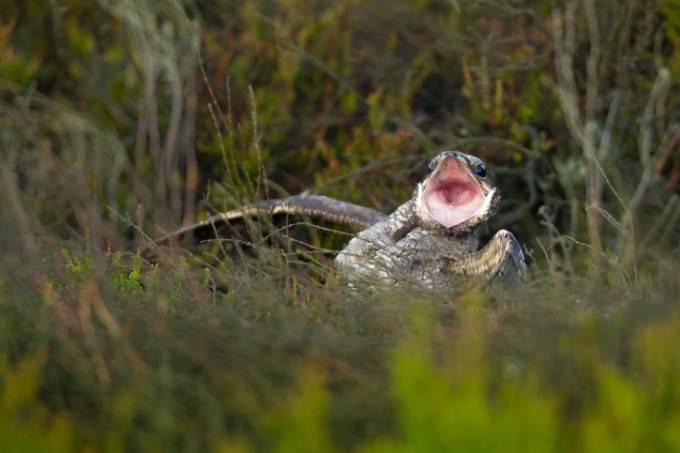 Czym ptak może wydoić kozę? Skrzydłem? Starożytni powiedzieliby, że dziobem. Patrząc na kozodoja można by im uwierzyć. To jeden z najbardziej niezwykłych ptaków posiadający olbrzymią paszczę przeznaczoną do łowienia owadów. Jego żuchwa kończy się tuż pod okiem, a szeroko otwarty dziób sprawia wrażenie demonicznego połykacza powietrza.