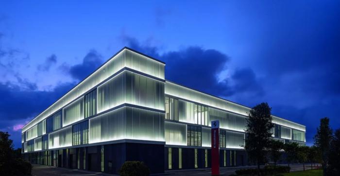 Projekt budynku z opalowymi i przezroczystymi panelami przeszklonymi jest dziełem Mario Cucinella Architects z Bolonii, kładącego duży nacisk na efektywność energetyczną i zrównoważony rozwój. Obiekty przechowują i poddają recyklingowi wodę deszczową, mają inteligentne właściwości izolacyjne i termiczne przez cały rok, a także system klimatyzacji zasilany energią odnawialną. 3000 paneli fotowoltaicznych na dachu wytwarza moc wyjściową 1,3 megawata.