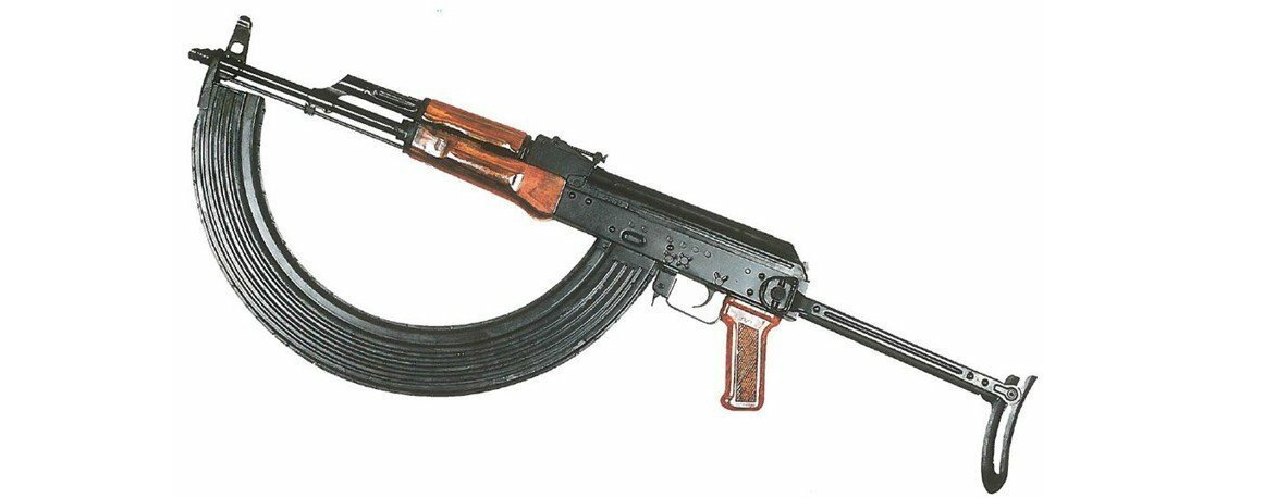 12. Karabin szturmowy AKMS z magazynkiem o zwiększonej pojemności (80 pocisków)