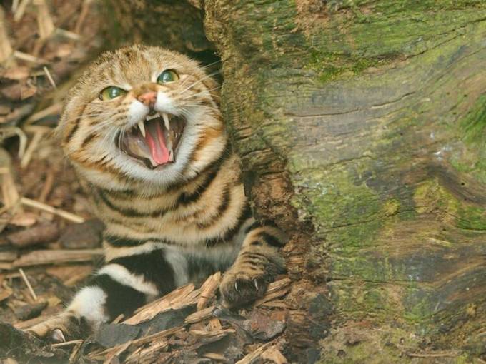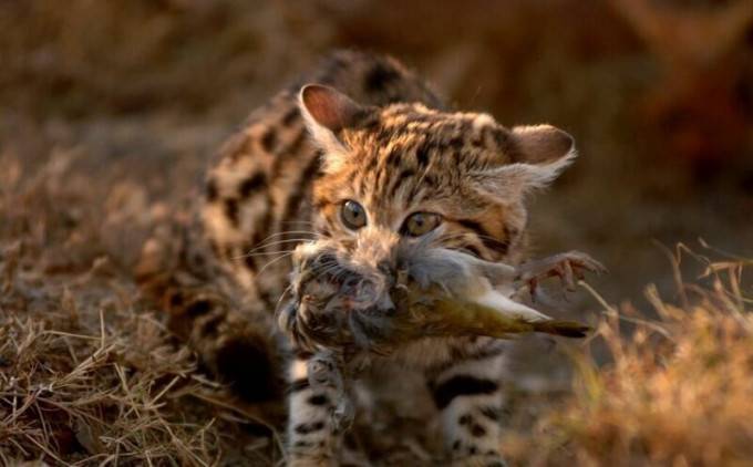 Ten uroczy z wyglądu i wielkości kitek przypomina kota domowego, ale nie miejcie złudzeń. Co najmniej dwie cechy ich różnią. Po pierwsze Kot czarnołapy, jak sama nazwa wskazuje, ma łapki z czarnym podbiciem. Druga różnica jest taka, że ten milusiński nocą zabija co 50 minut, a najchętniej poluje na wszystko, co się rusza – nawet kilkukrotnie większe stworzenia.
